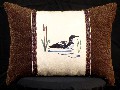 This is a one-of-a-kind custom accent pillow. The design is a loon with cattails. Over the years this has been one of our most popular designs.